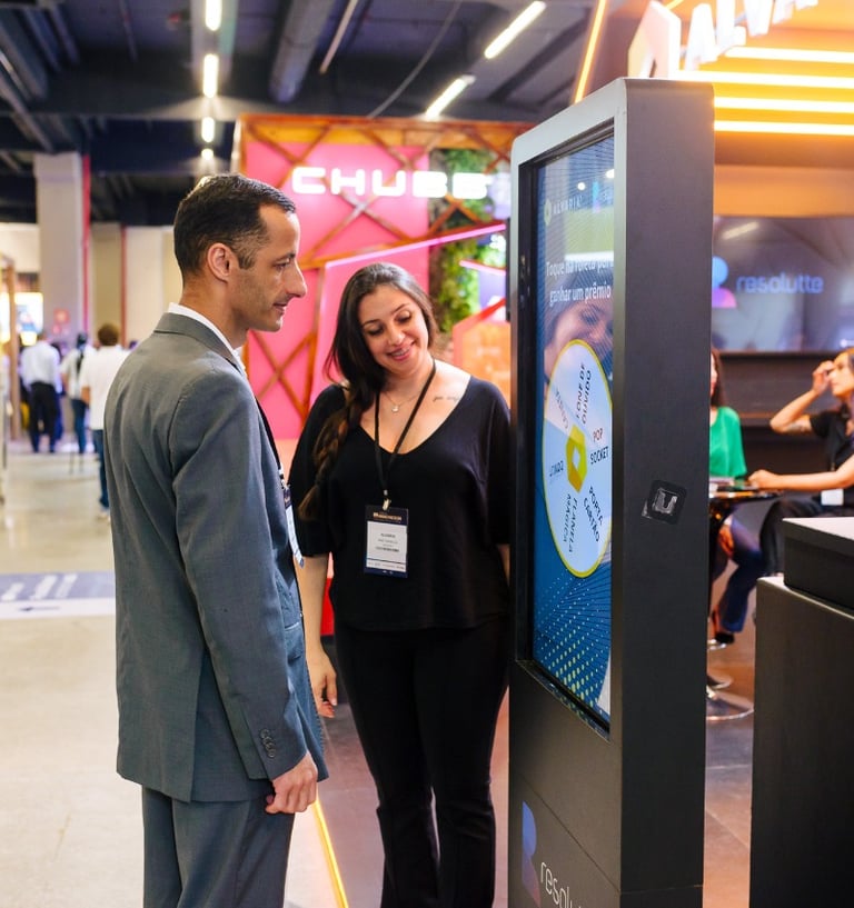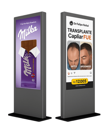 Oferecemos totens digitais, painéis interativos e lousas digitais de alta resolução